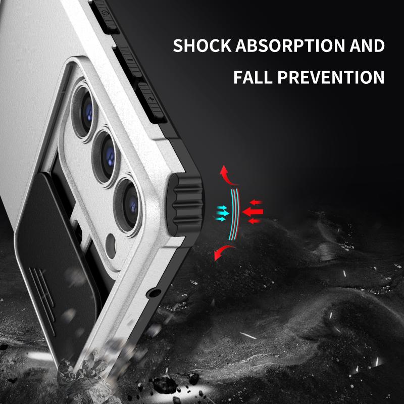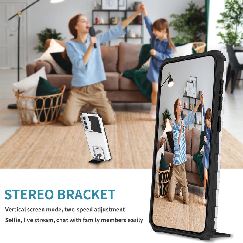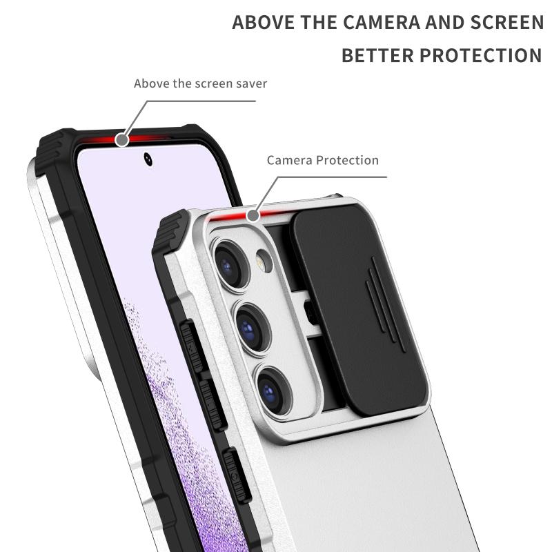Θήκη τηλεφώνου για Samsung Galaxy S23+ 5G με στερεοσκοπική βάση και συρόμενο προστατευτικό κάμερας (Λευκό)