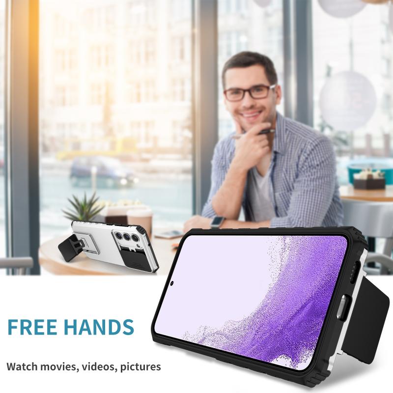 Θήκη τηλεφώνου Samsung Galaxy S23 5G με στερεοσκοπική βάση και συρόμενο προστατευτικό κάμερας (Λευκό)