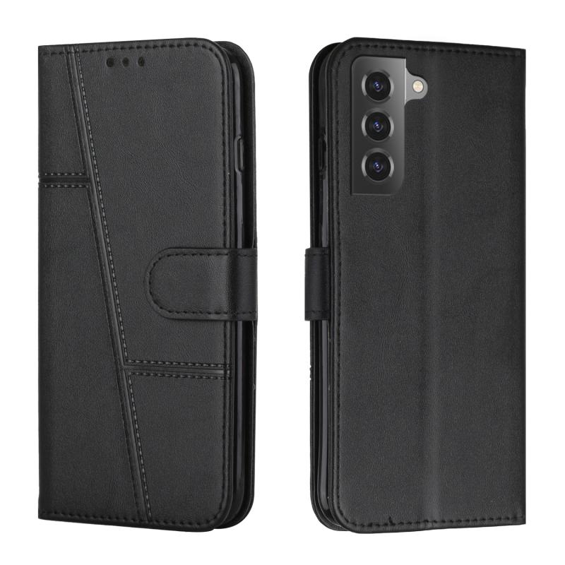 Θήκη τηλεφώνου Samsung Galaxy S23+ 5G από δέρμα μοσχαριού με υφή ραφής και αγκράφα (Μαύρο)