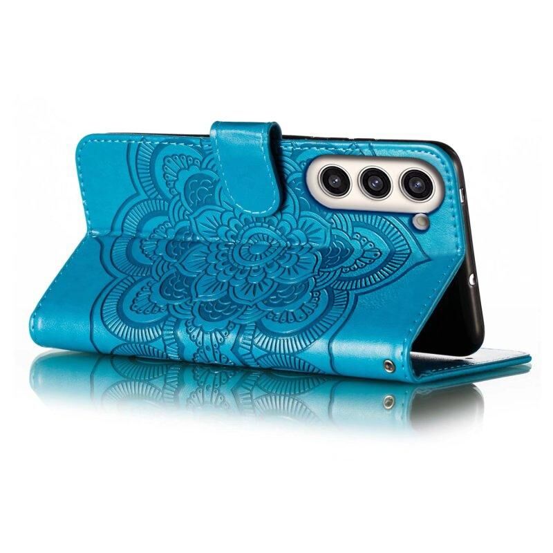 Για Samsung Galaxy S23+ 5G Sun Mandala ανάγλυφο μοτίβο τηλέφωνο δερμάτινη θήκη (μπλε)