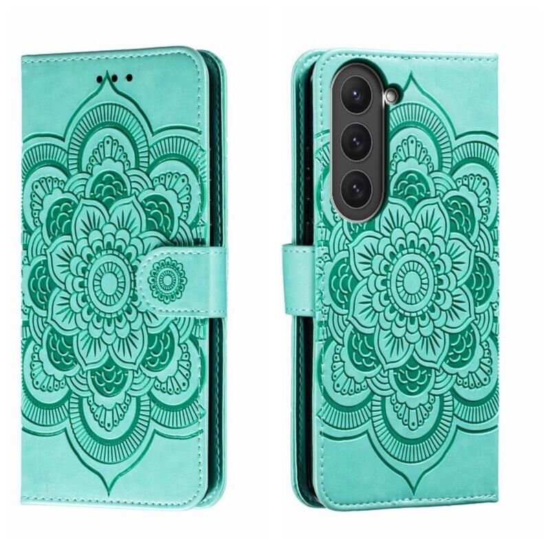 Για Samsung Galaxy S23 5G Sun Mandala ανάγλυφο μοτίβο τηλέφωνο δερμάτινη θήκη (πράσινο)