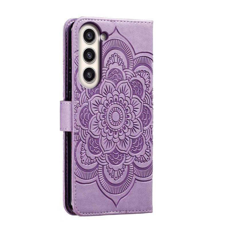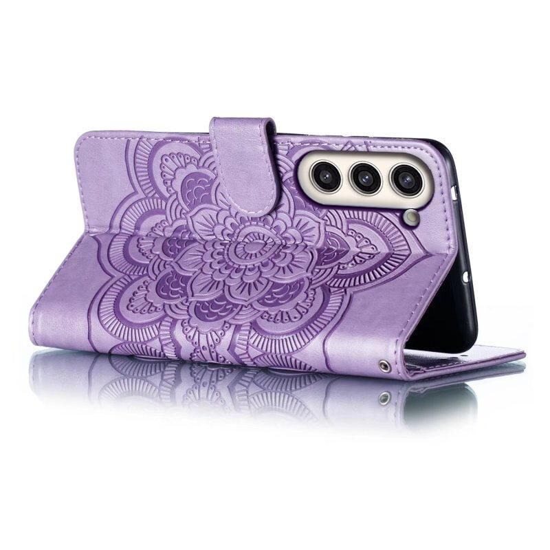 Για Samsung Galaxy S23+ 5G Sun Mandala ανάγλυφο μοτίβο τηλέφωνο δερμάτινη θήκη (μωβ)