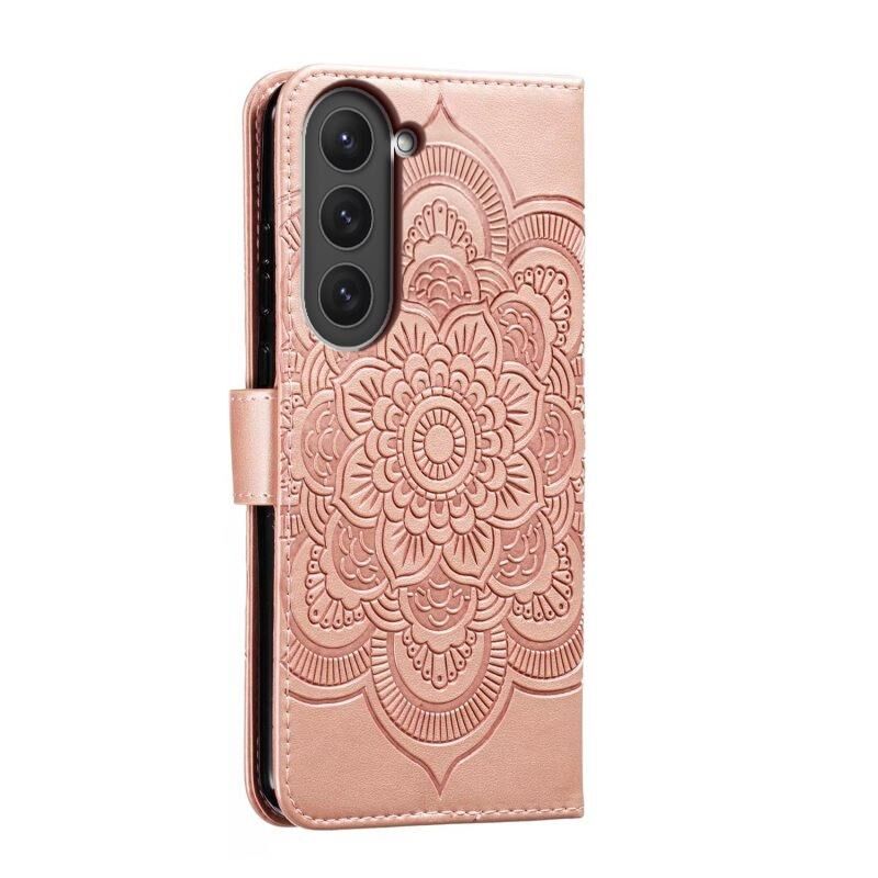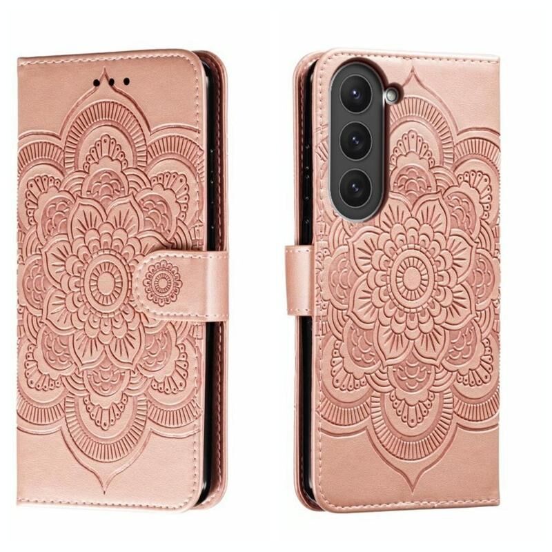 Για Samsung Galaxy S23 5G Sun Mandala ανάγλυφο μοτίβο τηλέφωνο δερμάτινη θήκη (Rose Gold)