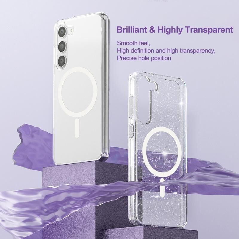 For Samsung Galaxy S23 5G Terminator Style Glitter Powder MagSafe Magnetic Phone Case(Transparent)