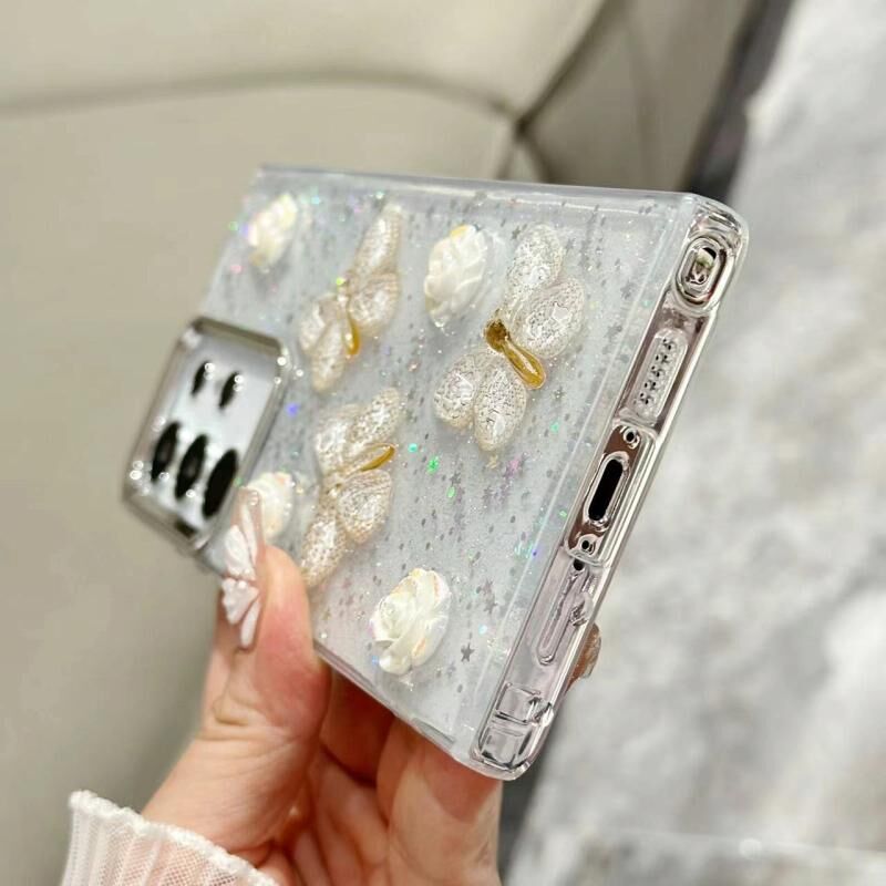 Θήκη τηλεφώνου TPU με τρισδιάστατη πεταλούδα και γκλίτερ για Samsung Galaxy S23+ 5G (Μπλε)