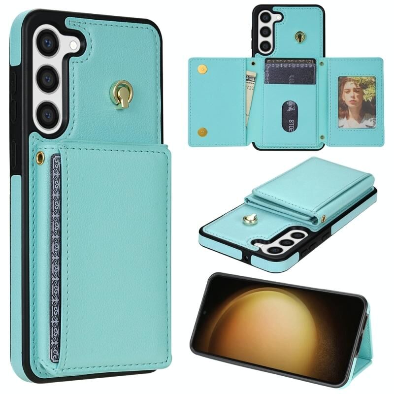 Για το Samsung Galaxy S23 5G Τρεις φορές κάρτα τσάντα υπόθεση τηλεφώνου με μακρύ κορδόνι (μέντα)