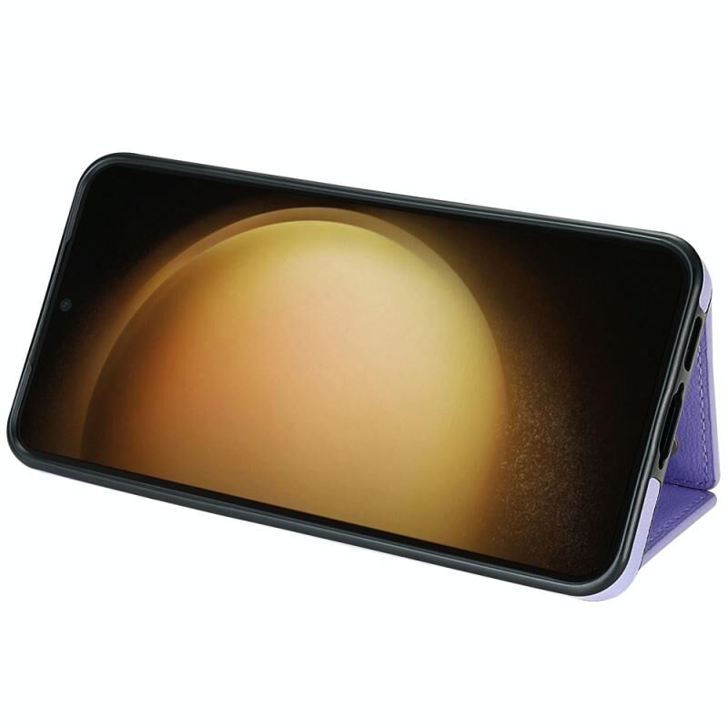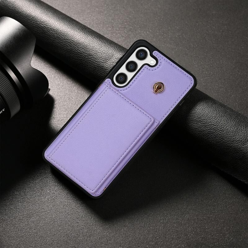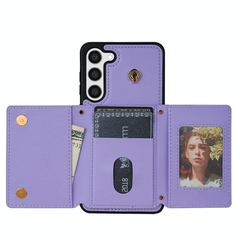 Για Samsung Galaxy S23 5G Τρεις φορές κάρτα τσάντα υπόθεση τηλεφώνου με μακρύ κορδόνι (μωβ)