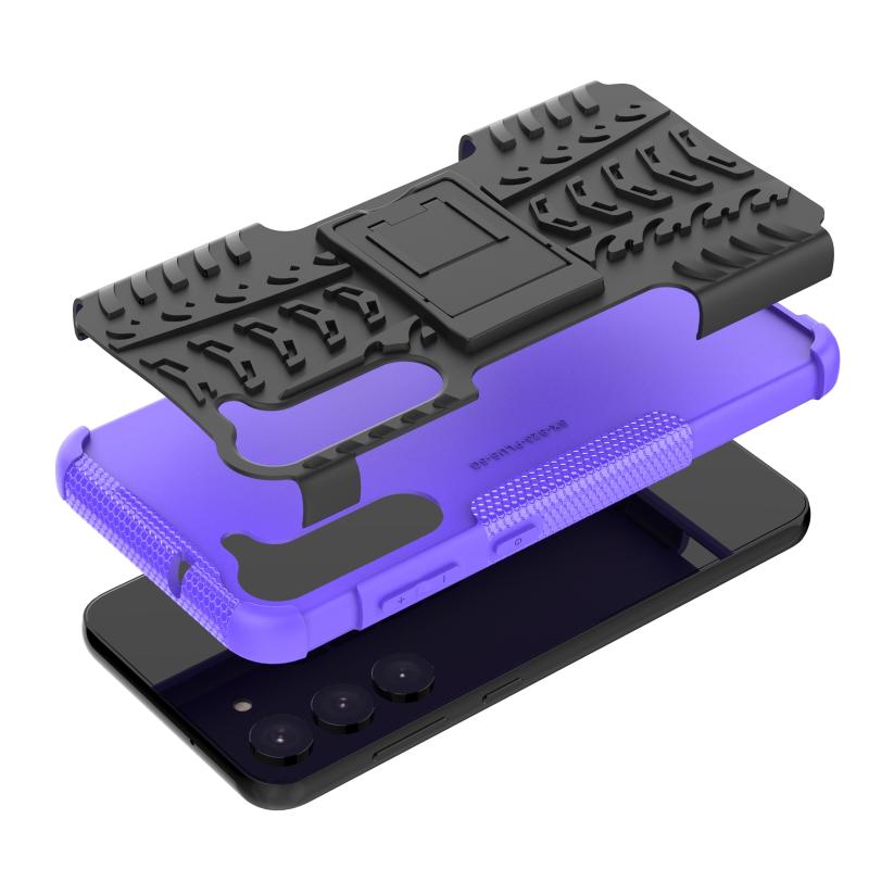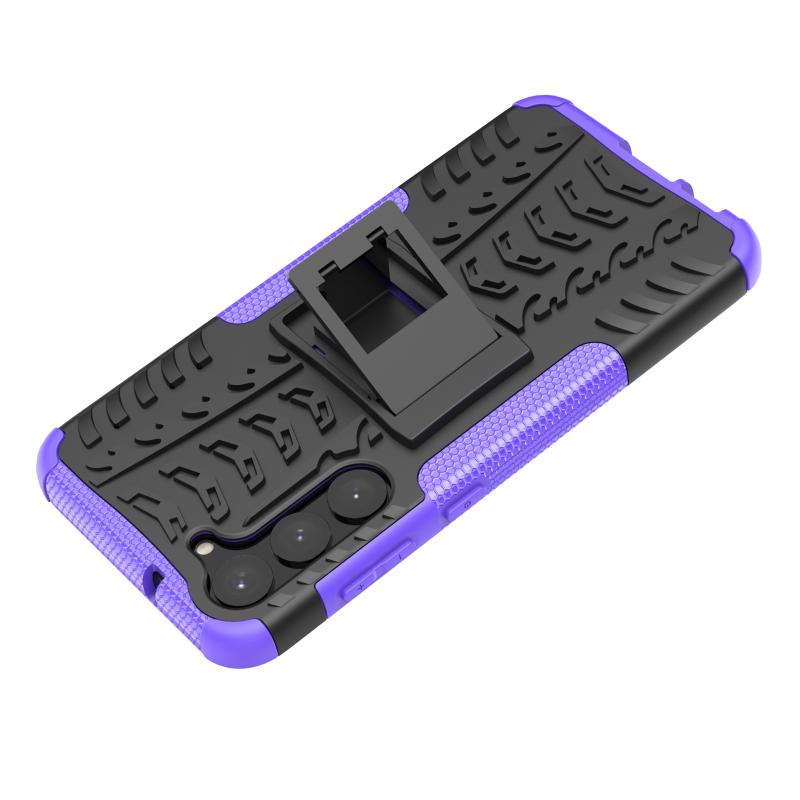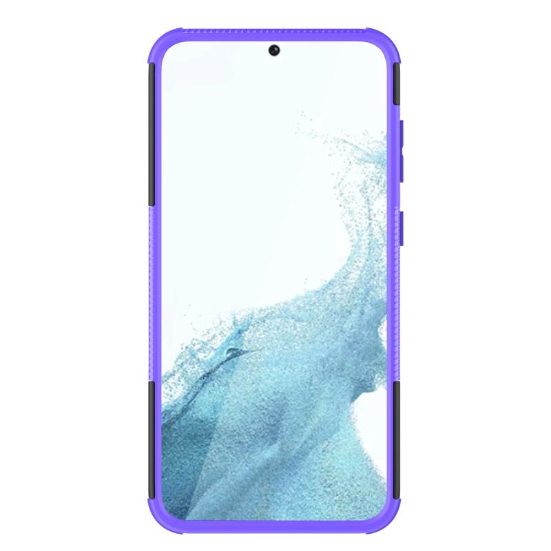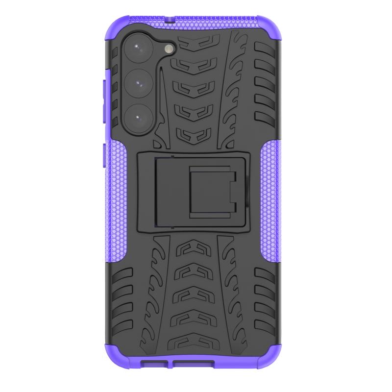 Θήκη κινητού τηλεφώνου για Samsung Galaxy S23+ 5G με υφή ελαστικού + PC και βάση στήριξης (Μωβ)