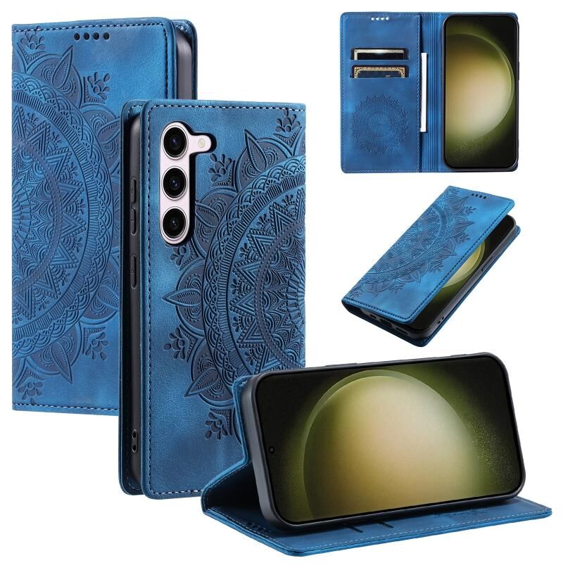 Για Samsung Galaxy S23 5G Totem ανάγλυφη μαγνητική δερμάτινη θήκη τηλεφώνου (μπλε)