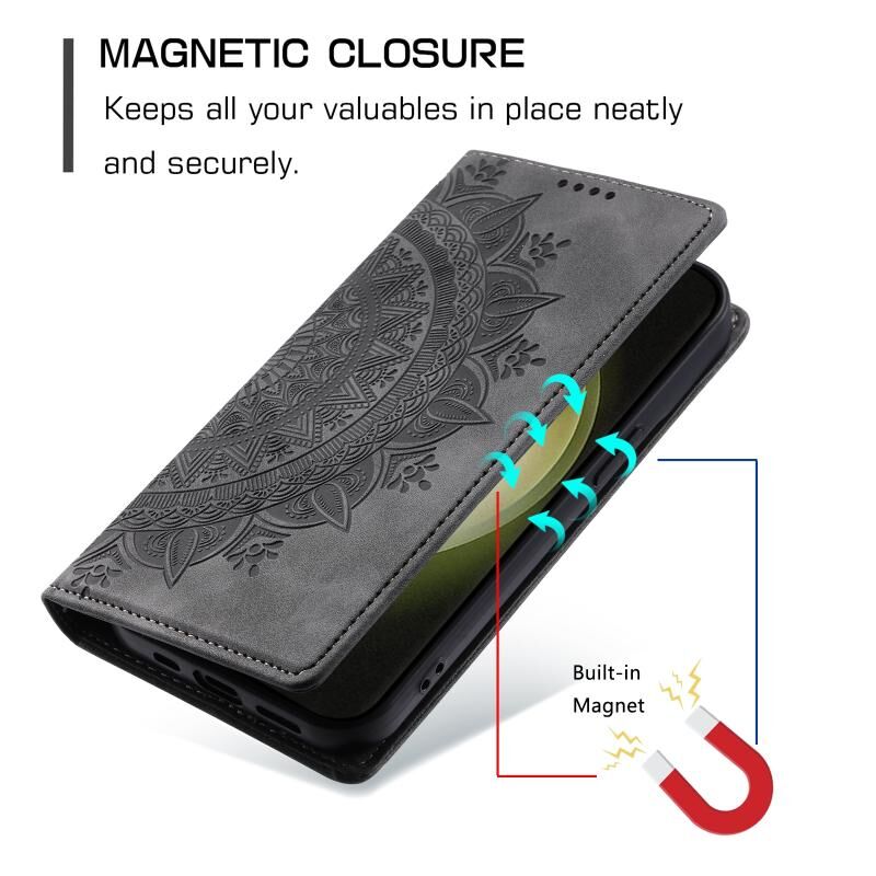 Για Samsung Galaxy S23 5G Totem ανάγλυφη μαγνητική δερμάτινη θήκη τηλεφώνου (γκρι)