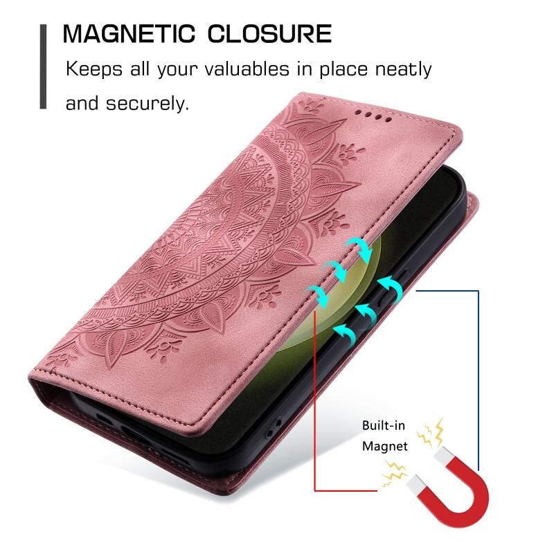Για Samsung Galaxy S23 5G Totem ανάγλυφη μαγνητική δερμάτινη θήκη τηλεφώνου (ροζ χρυσό)