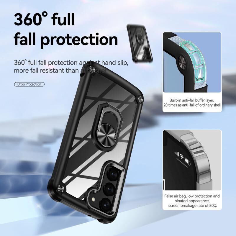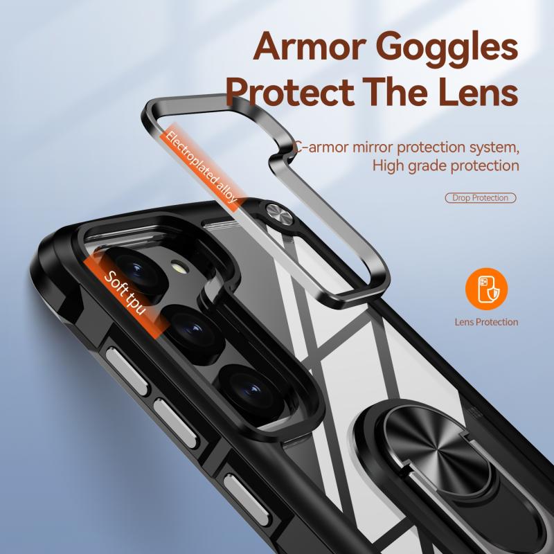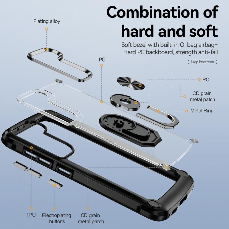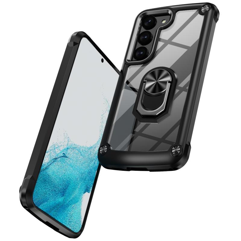 Θήκη τηλεφώνου για Samsung Galaxy S23+ 5G από TPU + PC με προστασία φακού και δακτύλιο στήριξης (Μαύρο)