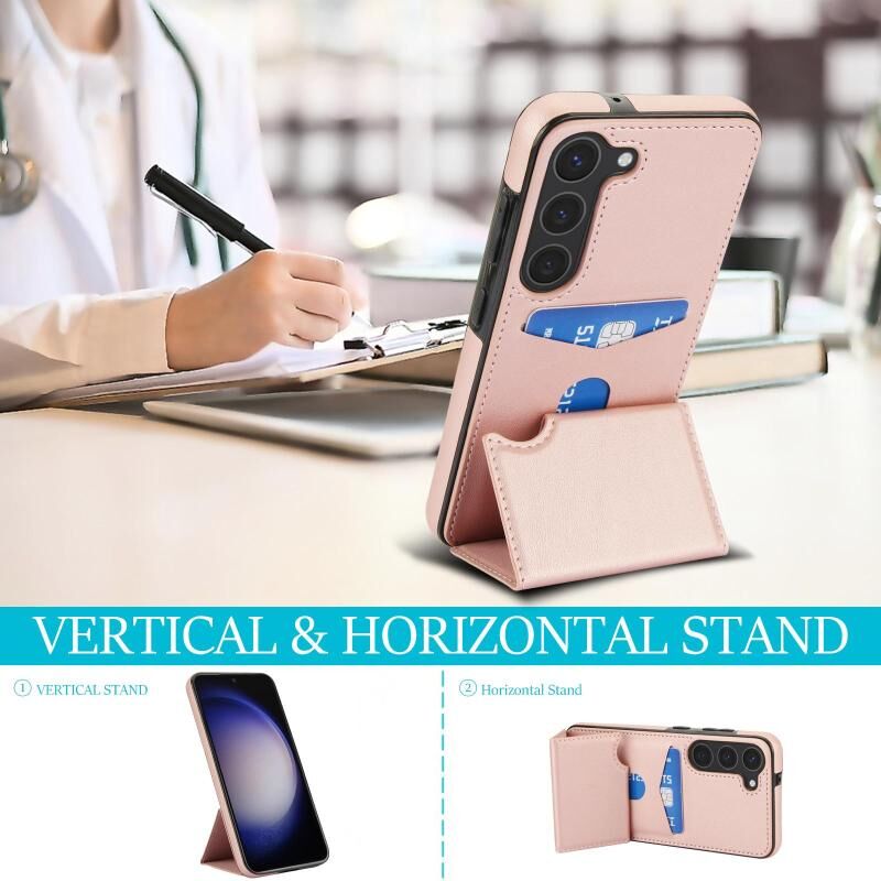 For Samsung Galaxy S23+ 5G Tri-fold Holder Leather Phone Case with Card Slot(Rose Gold)