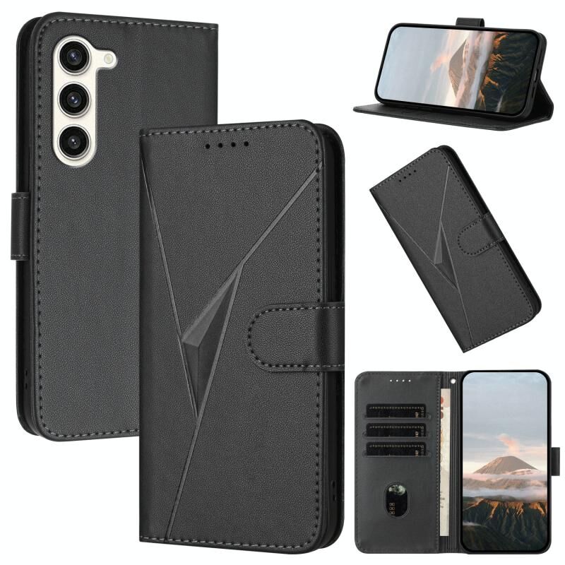 Για Samsung Galaxy S23 + 5G τρίγωνο μοτίβο αγκράφα κούμπωμα δερμάτινη θήκη τηλεφώνου (μαύρο)