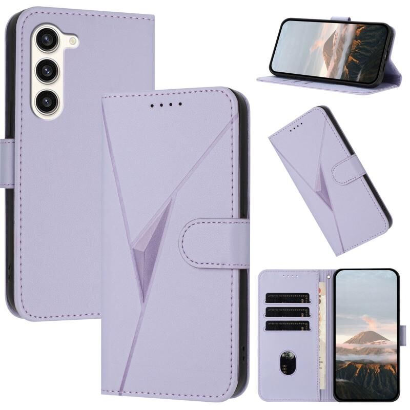 Για Samsung Galaxy S23 + 5G τρίγωνο μοτίβο αγκράφα κούμπωμα δερμάτινη θήκη τηλεφώνου (Light Purple)