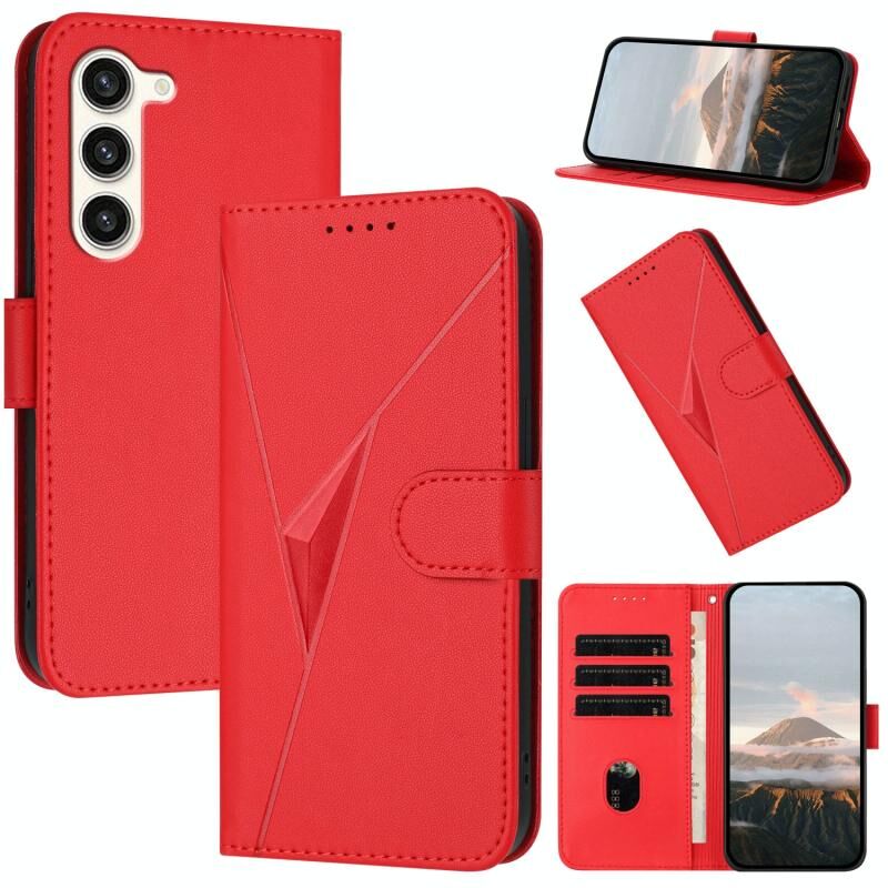 Για Samsung Galaxy S23 + 5G Τρίγωνο μοτίβο αγκράφα κούμπωμα δερμάτινη θήκη τηλεφώνου (κόκκινο)