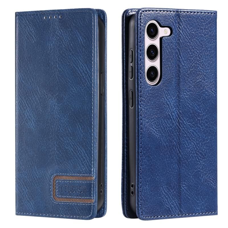 Θήκη τηλεφώνου Samsung Galaxy S23 5G TTUDRCH RFID με μαγνητικό δέρμα και ανάγλυφη υφή (Μπλε)