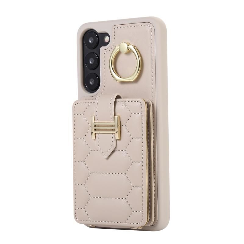 Για Samsung Galaxy S23 + 5G Κάθετη κάρτα τσάντα δαχτυλίδι κάτοχος υπόθεση τηλεφώνου με διπλό κορδόνι (Μπεζ)