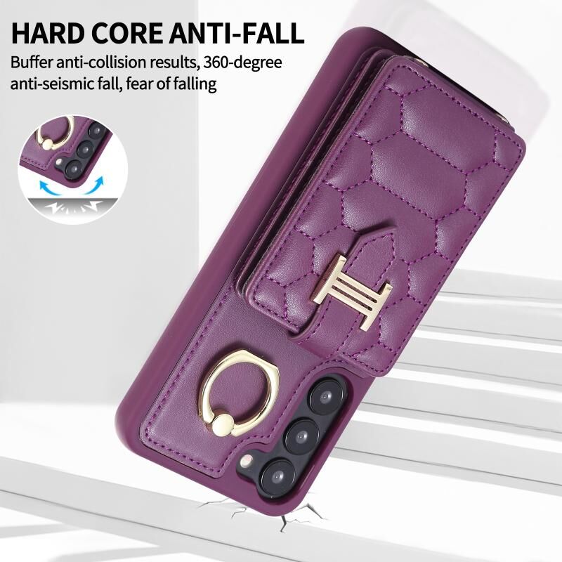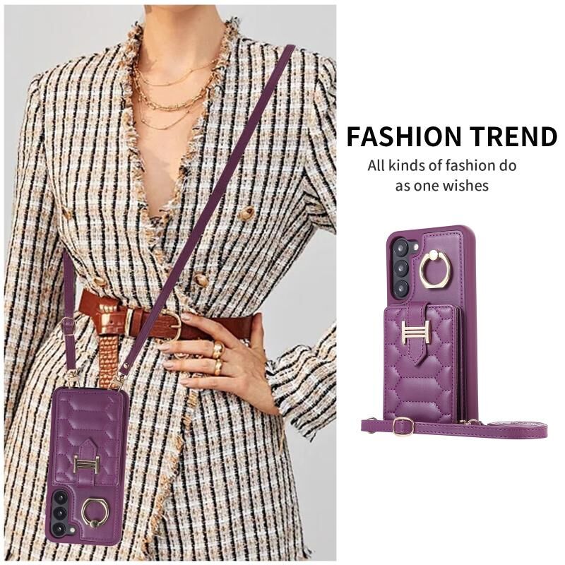 Για Samsung Galaxy S23 5G Κάθετη κάρτα τσάντα δαχτυλίδι τσάντα κάτοχος θήκη τηλεφώνου με διπλή κορδόνι (σκούρο μωβ)