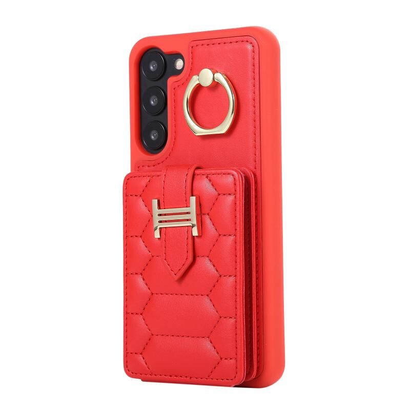 Για Samsung Galaxy S23 + 5G Κάθετη κάρτα τσάντα δαχτυλίδι κάτοχος θήκη τηλεφώνου με διπλό κορδόνι (Κόκκινο)