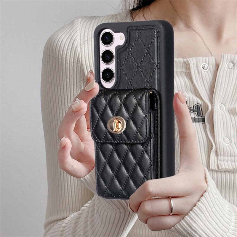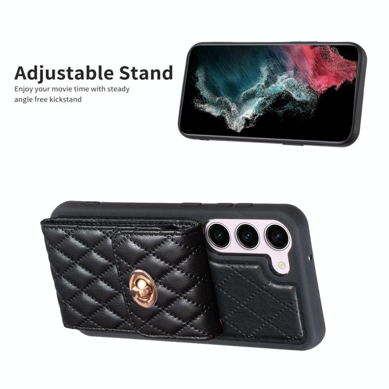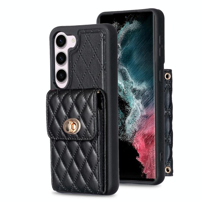 Θήκη τηλεφώνου Samsung Galaxy S23 5G, κάθετη μεταλλική θήκη πορτοφολιού, δερμάτινη με ρόμβους (Μαύρο)