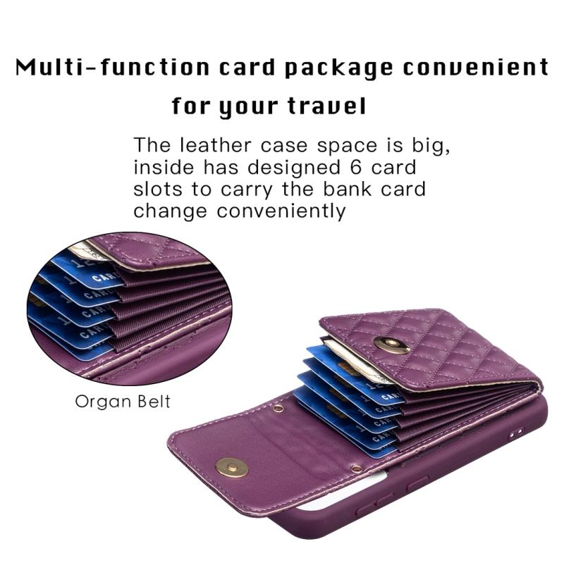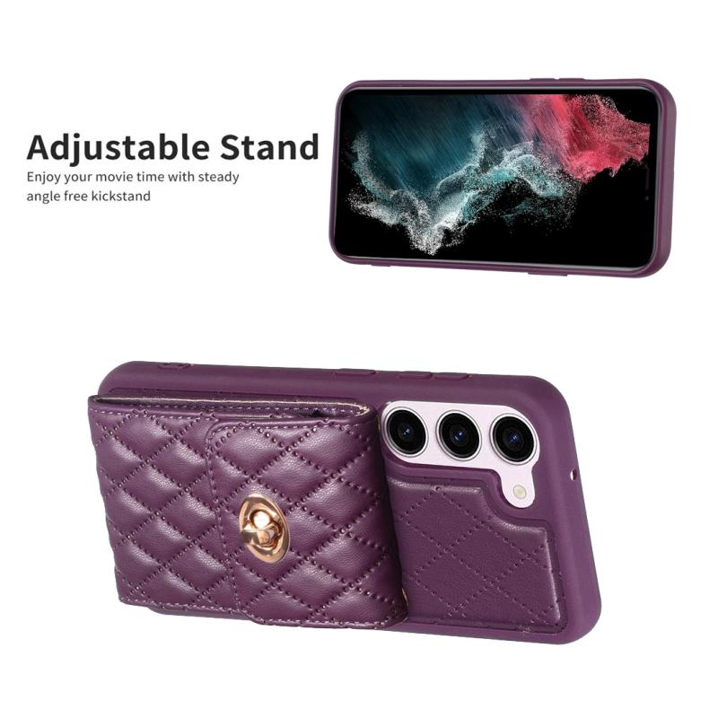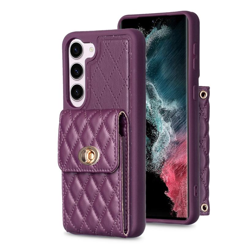 Θήκη τηλεφώνου Samsung Galaxy S23 5G, κάθετη μεταλλική θήκη πορτοφολιού, δερμάτινη με ρόμβους (Σκούρο μωβ)