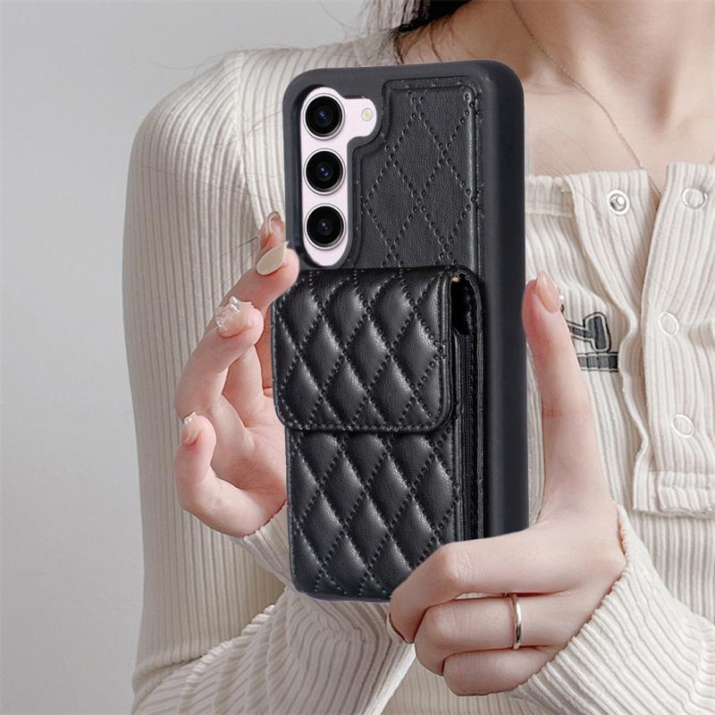 Θήκη τηλεφώνου Samsung Galaxy S23 5G κάθετη, πορτοφόλι, δερμάτινη με ρόμβους (Μαύρο)