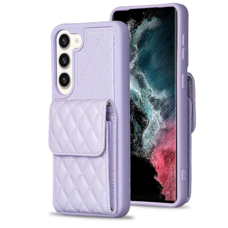 Για Samsung Galaxy S23+ 5G Κάθετη πορτοφόλι ρομβοειδή δερμάτινη θήκη τηλεφώνου (μωβ)