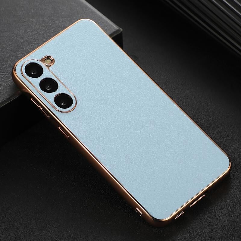 For Samsung Galaxy S23+ 5G Waves Series Nano Electroplating Genuine Leather Phone Case(Blue)