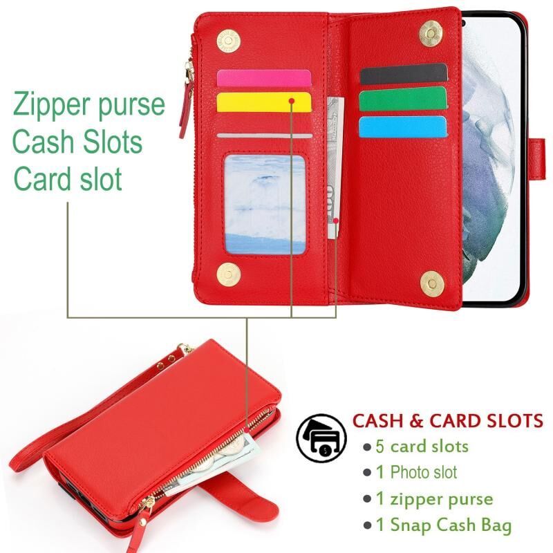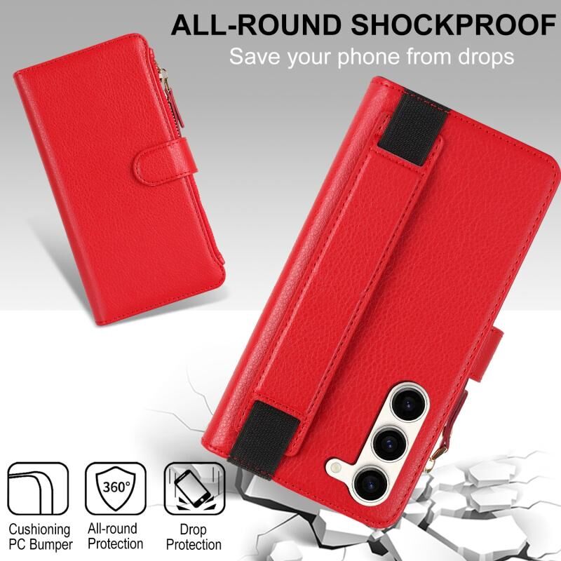 Για Samsung Galaxy S23 + 5G Wristband κάτοχος φερμουάρ πορτοφόλι RFID δερμάτινη θήκη τηλεφώνου (κόκκινο)