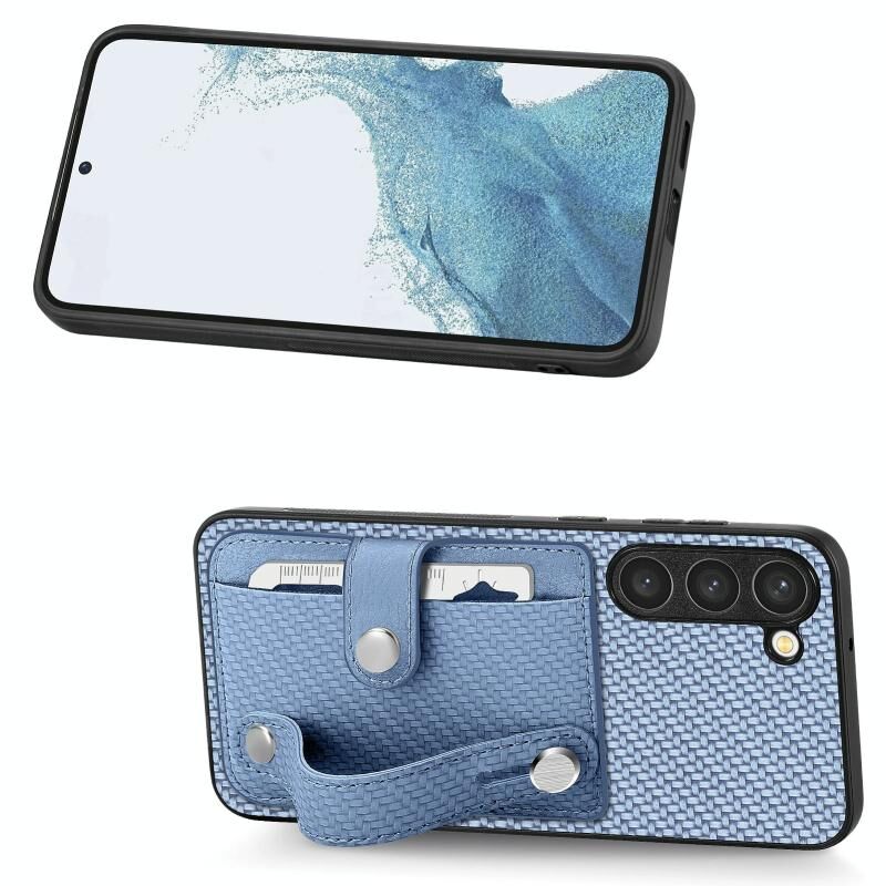 Για Samsung Galaxy S23+ 5G Wristband Kickstand Wallet Πίσω υπόθεση τηλεφώνου με μαχαίρι εργαλείο (μπλε)