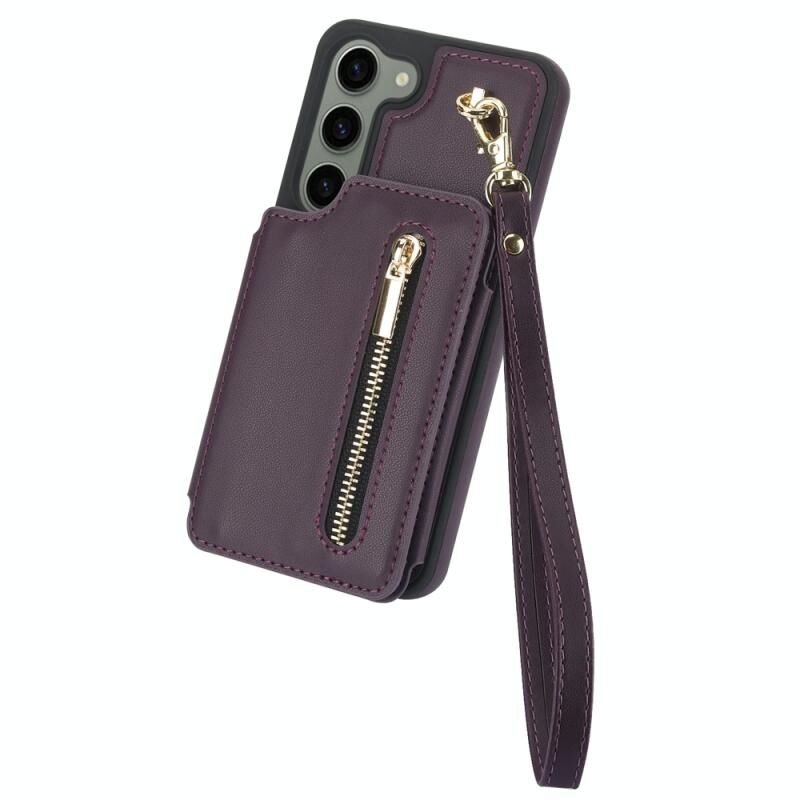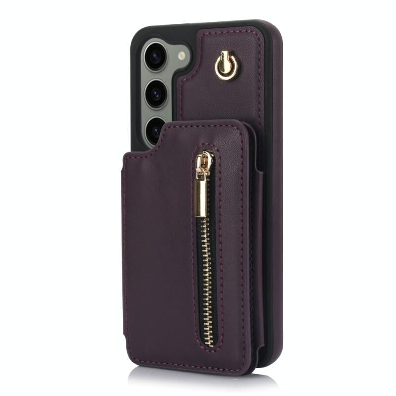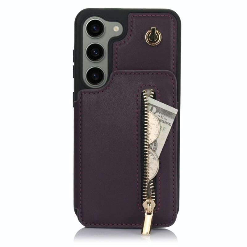 Για Samsung Galaxy S23 5G YM006 δέρμα αίσθηση φερμουάρ τσάντα κάρτα υπόθεση τηλεφώνου με διπλή κορδόνι (σκούρο μωβ)