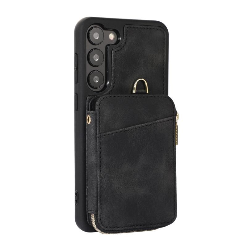 Για Samsung Galaxy S23+ 5G φερμουάρ τσάντα κάρτα πίσω κάλυμμα θήκη τηλεφώνου (Μαύρο)