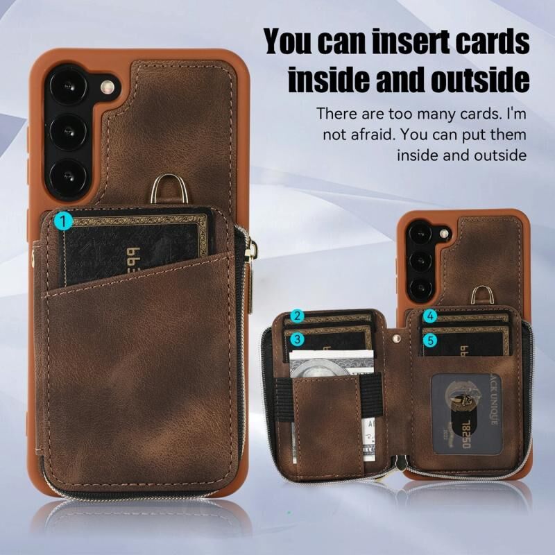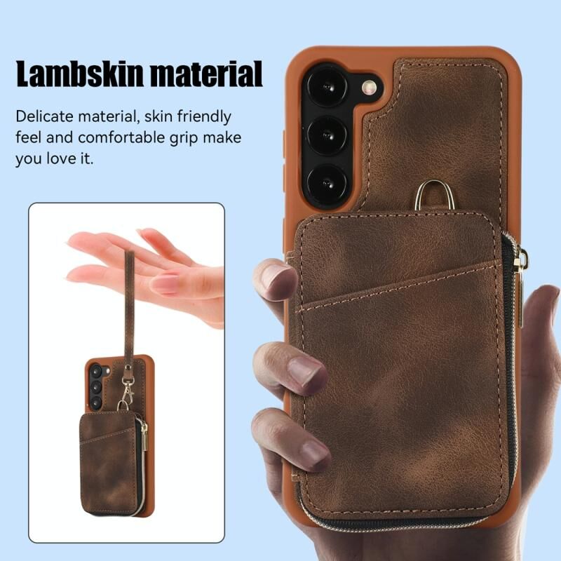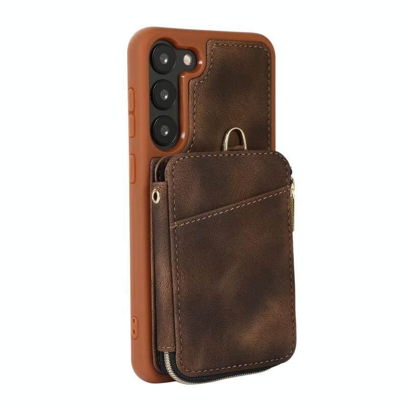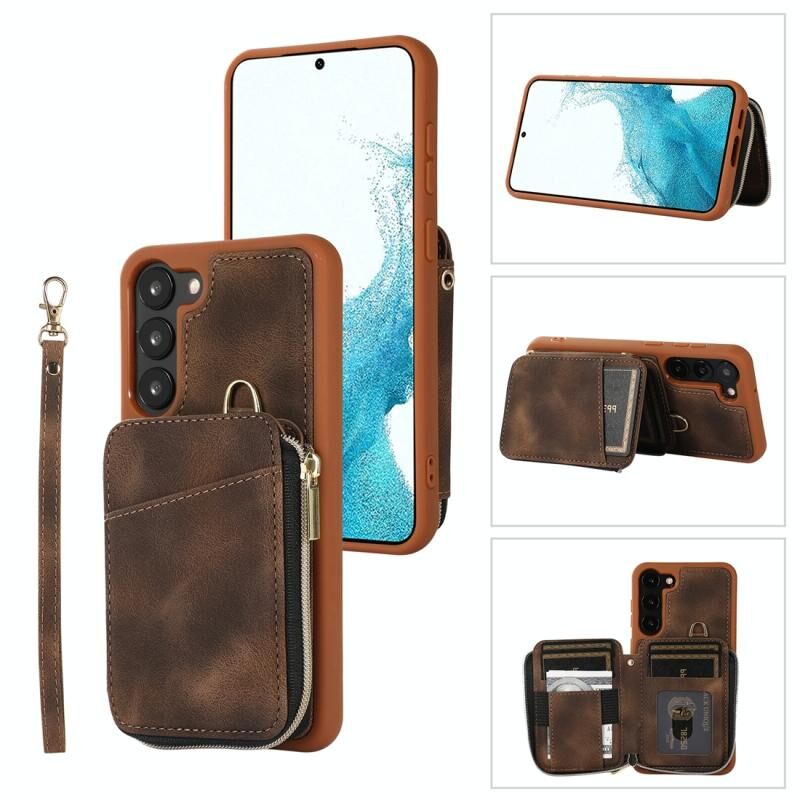 Για Samsung Galaxy S23 5G φερμουάρ τσάντα κάρτα πίσω κάλυμμα θήκη τηλεφώνου (καφέ)