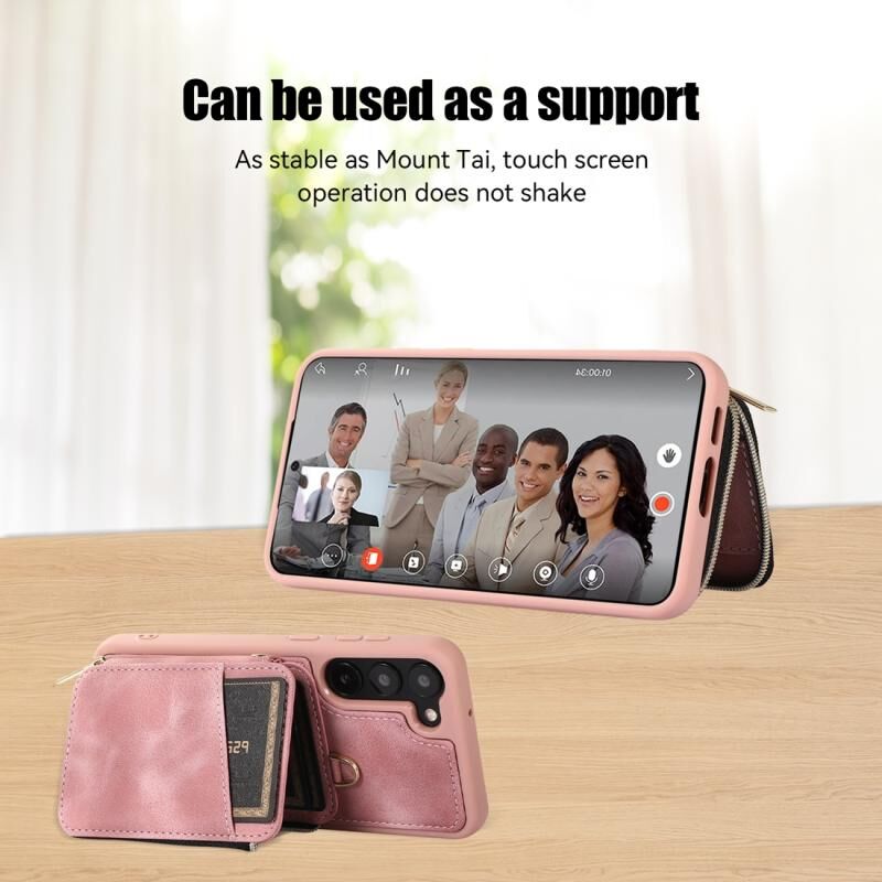 Για Samsung Galaxy S23 5G φερμουάρ κάρτα τσάντα πίσω κάλυμμα θήκη τηλεφώνου (ροζ)