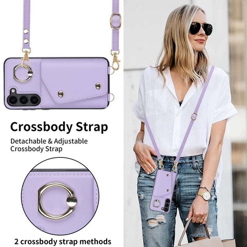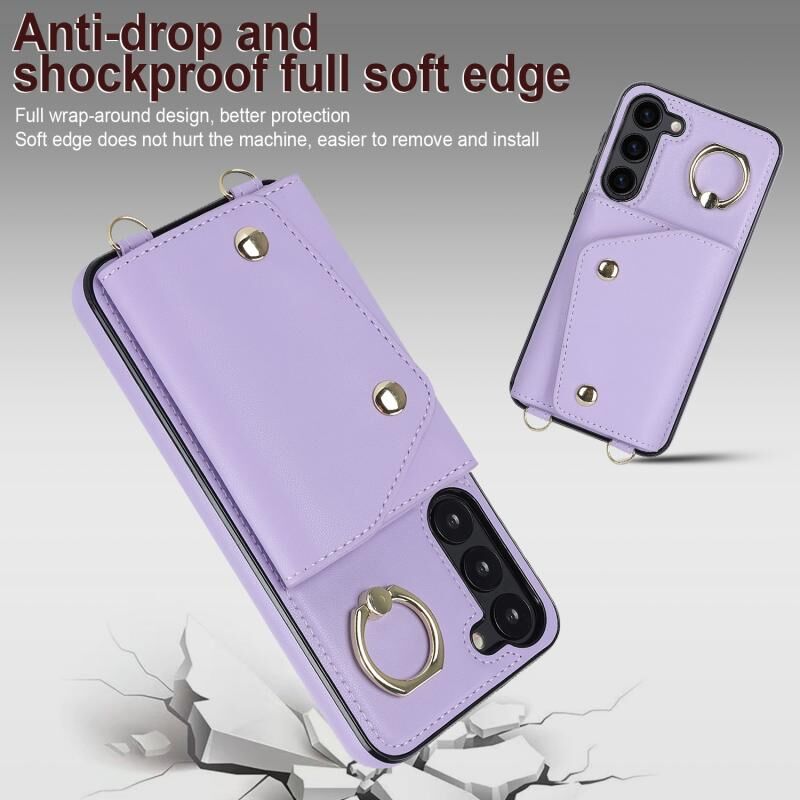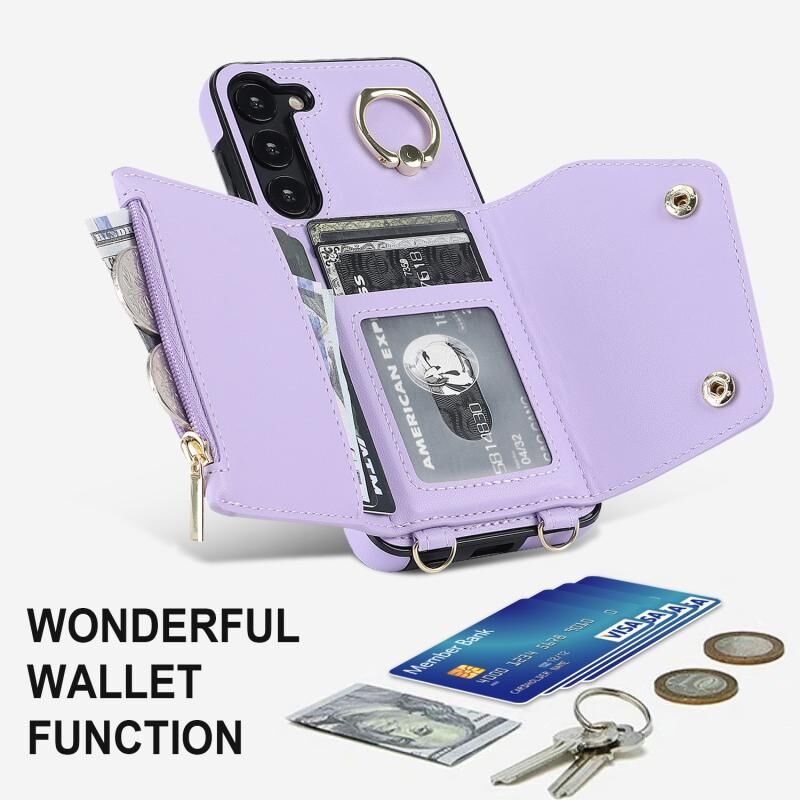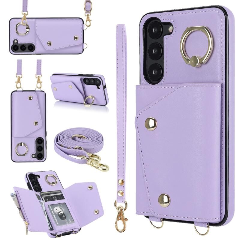 Για Samsung Galaxy S23 + 5G φερμουάρ τσάντα κάρτα τηλέφωνο υπόθεση με διπλή κορδόνι (μωβ)