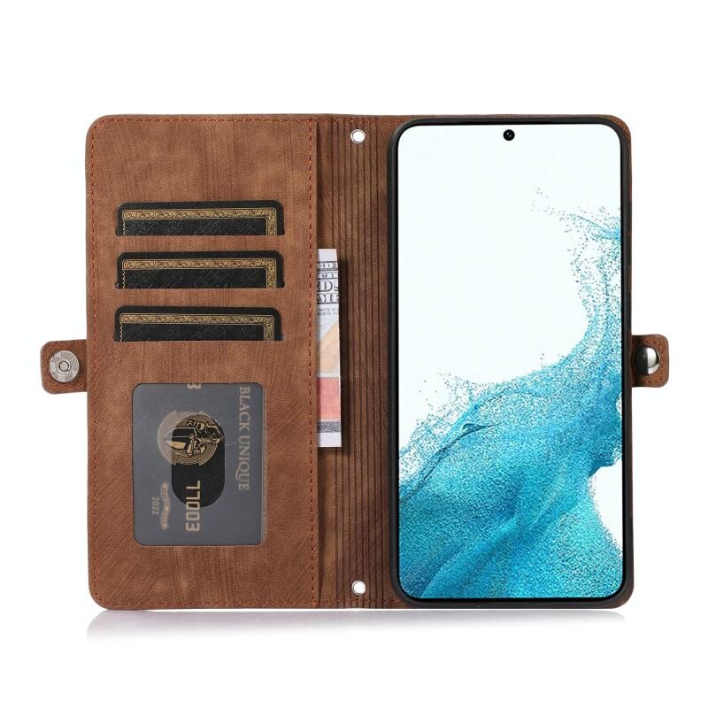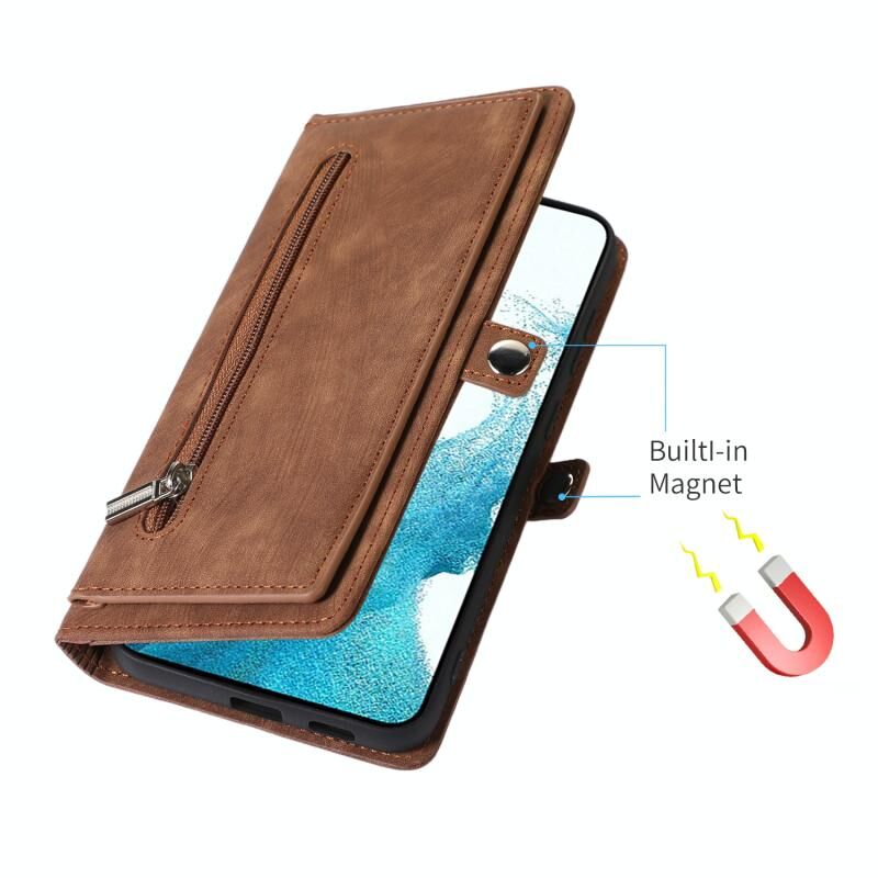 Για Samsung Galaxy S23 + 5G φερμουάρ κάρτα Slot πόρπη πορτοφόλι δερμάτινη θήκη τηλεφώνου (καφέ)