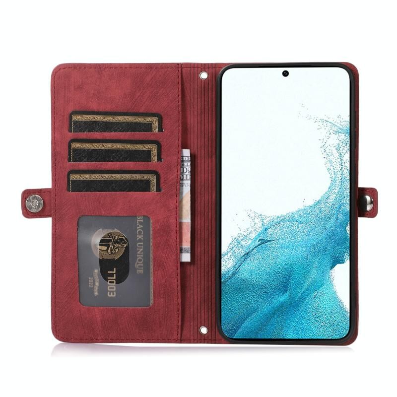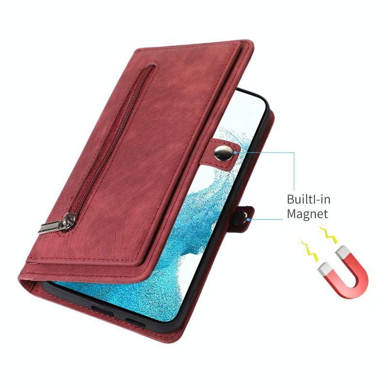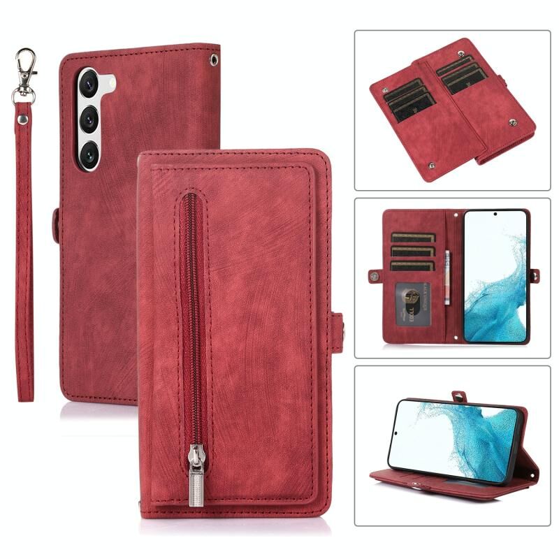 Για Samsung Galaxy S23 5G φερμουάρ κάρτα Slot πόρπη πορτοφόλι δερμάτινη θήκη τηλεφώνου (κόκκινο)