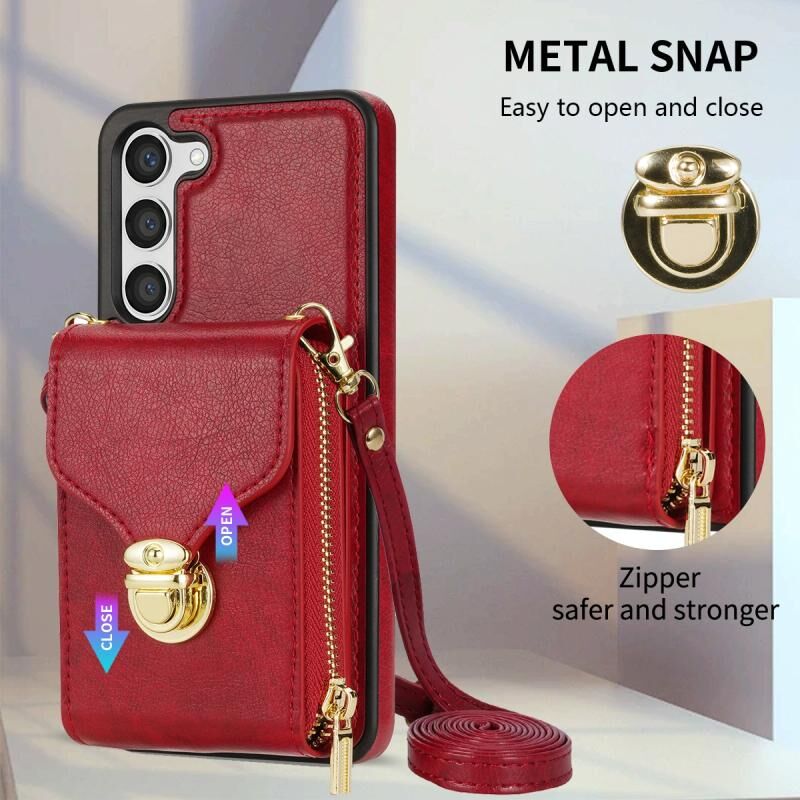 Για Samsung Galaxy S23 5G φερμουάρ υλικό κάρτα κάρτα πορτοφόλι υπόθεση τηλεφώνου (κόκκινο)