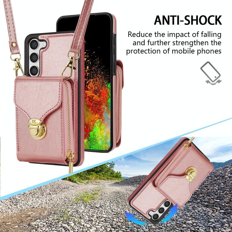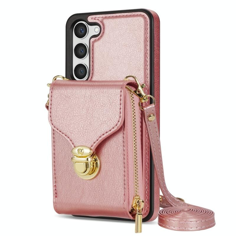 Για Samsung Galaxy S23 5G φερμουάρ υλικό κάρτα πορτοφόλι τηλέφωνο υπόθεση (Rose Gold)