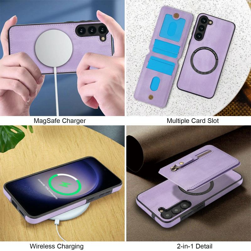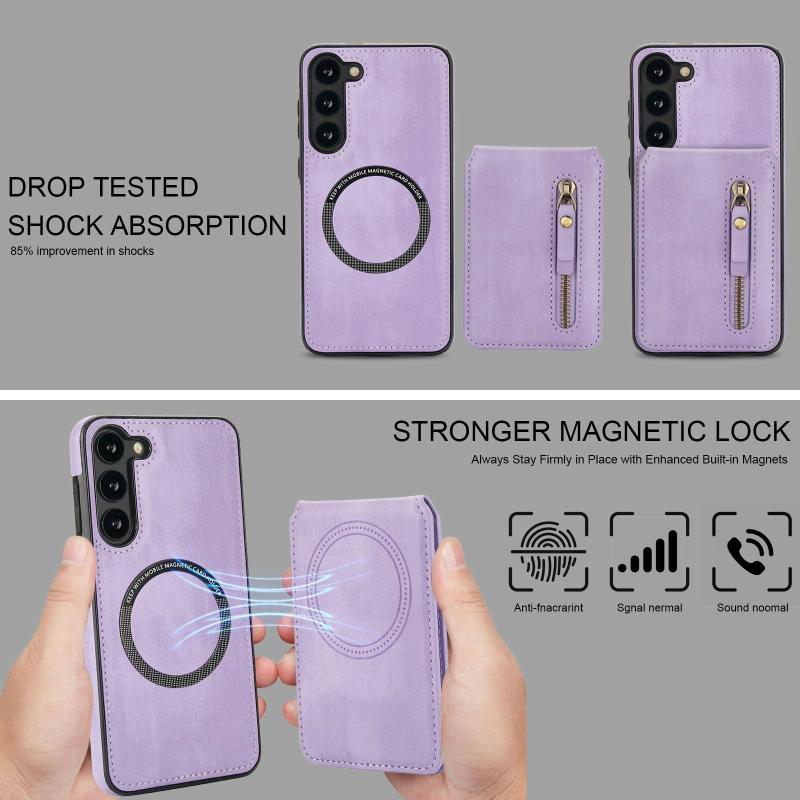 Για Samsung Galaxy S23 5G Δερμάτινη Θήκη Πορτοφόλι με MagSafe (Μωβ)
