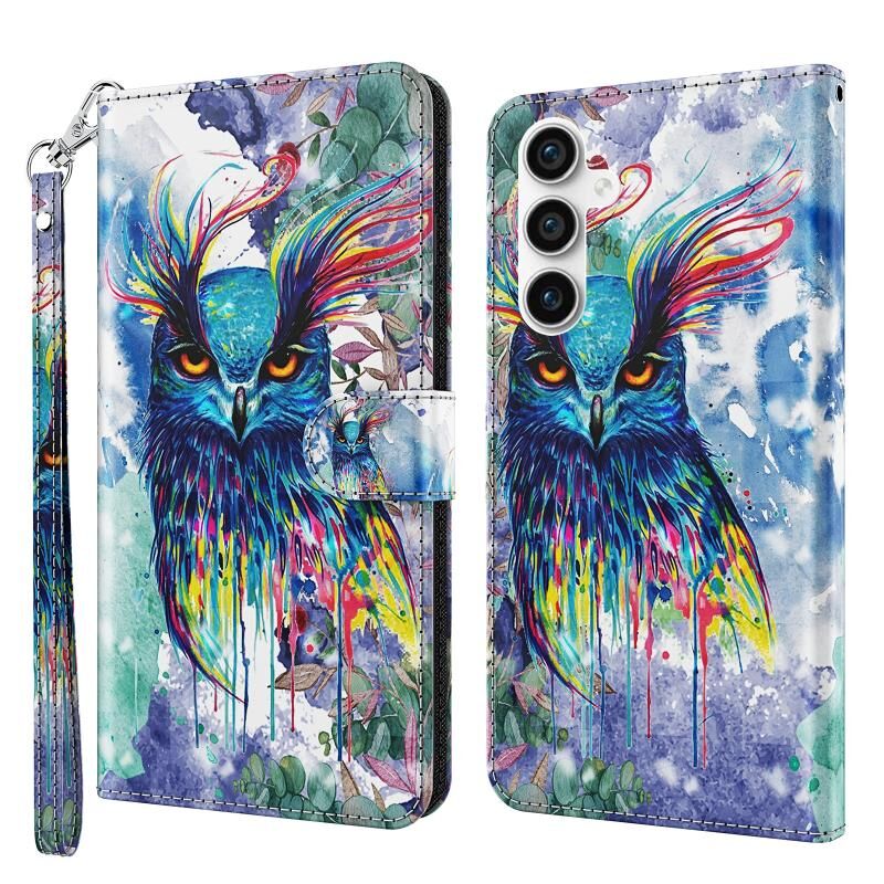 Θήκη τηλεφώνου Samsung Galaxy S23 FE 5G, δερμάτινη, με σχέδιο 3D ζωγραφικής (Γεράκι σε υδατοχρώματα)