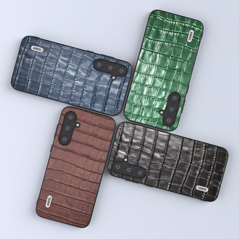 Θήκη τηλεφώνου από γνήσιο δέρμα με υφή κροκόδειλου για Samsung Galaxy S23 FE 5G ABEEL (Πράσινο)