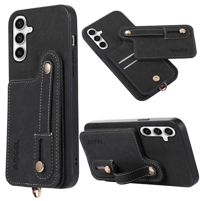 Θήκη κινητού τηλεφώνου Samsung Galaxy S23 FE 5G ABEEL με υφή δέρματος λυτσί, από PU (Μαύρο)