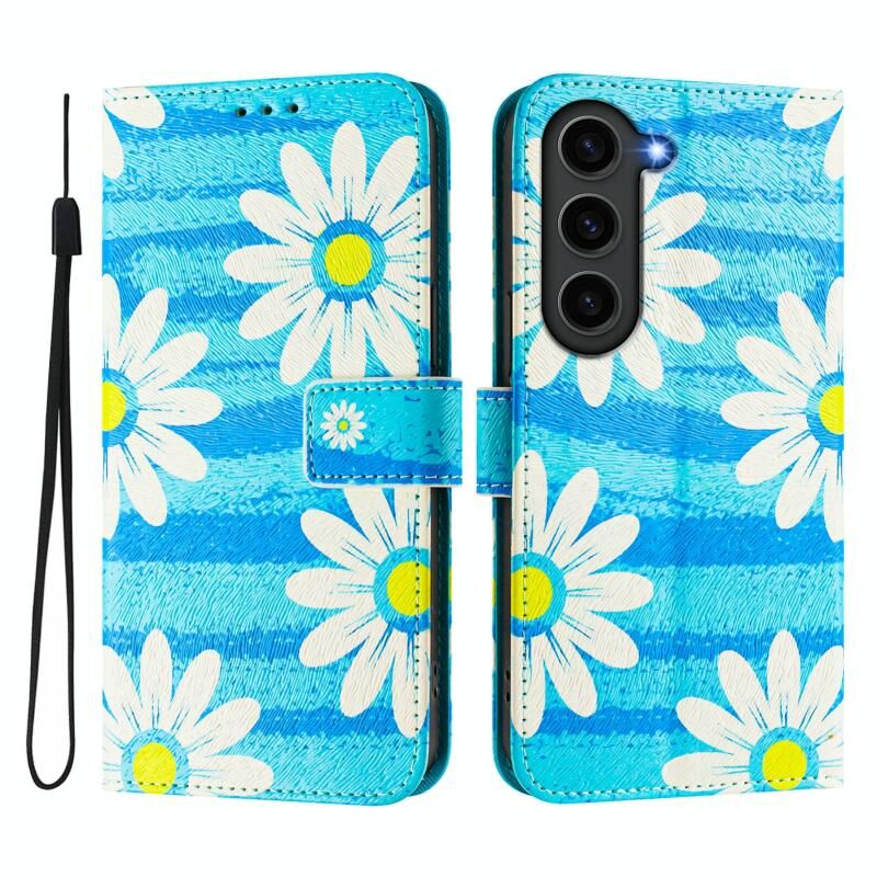 For Samsung Galaxy S23 FE 5G Art Colored Drawing Pattern Leather Phone Case(Blue daisy)