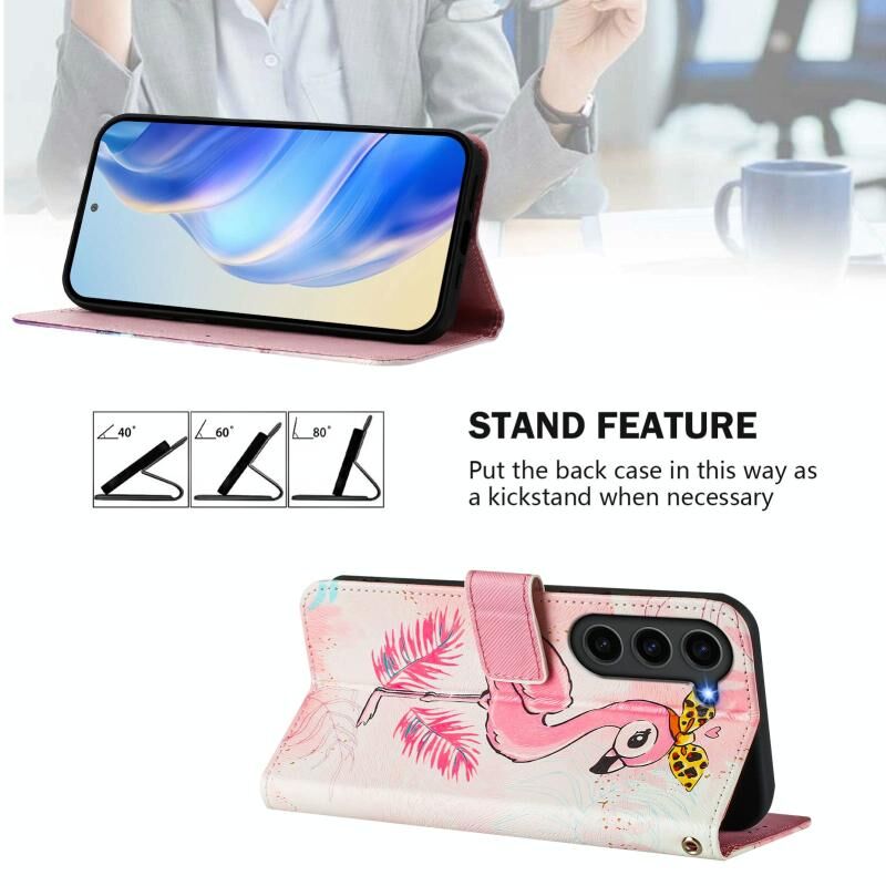 Θήκη τηλεφώνου Samsung Galaxy S23 FE 5G από δέρμα με σχέδιο ζωγραφικής και πολύχρωμο μοτίβο (Φλαμίνγκο)