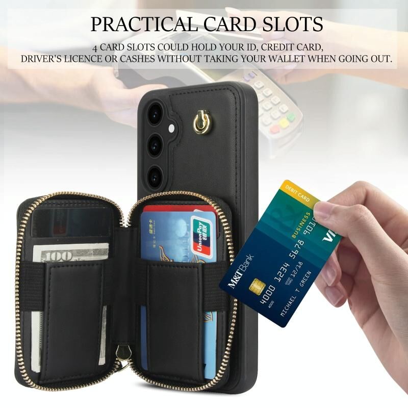 4. Πορτοφόλι με Φερμουάρ: Υπερπολλαπλές υποδοχές καρτών μπορούν να χωρέσουν πολλές κάρτες. Το άνοιγμα και το κλείσιμο του διαμερίσματος με φερμουάρ για μετρητά προστατεύει τα χρήματά σας. Άνετο και πρακτικό για να βγείτε έξω με μια τσάντα κινητού!