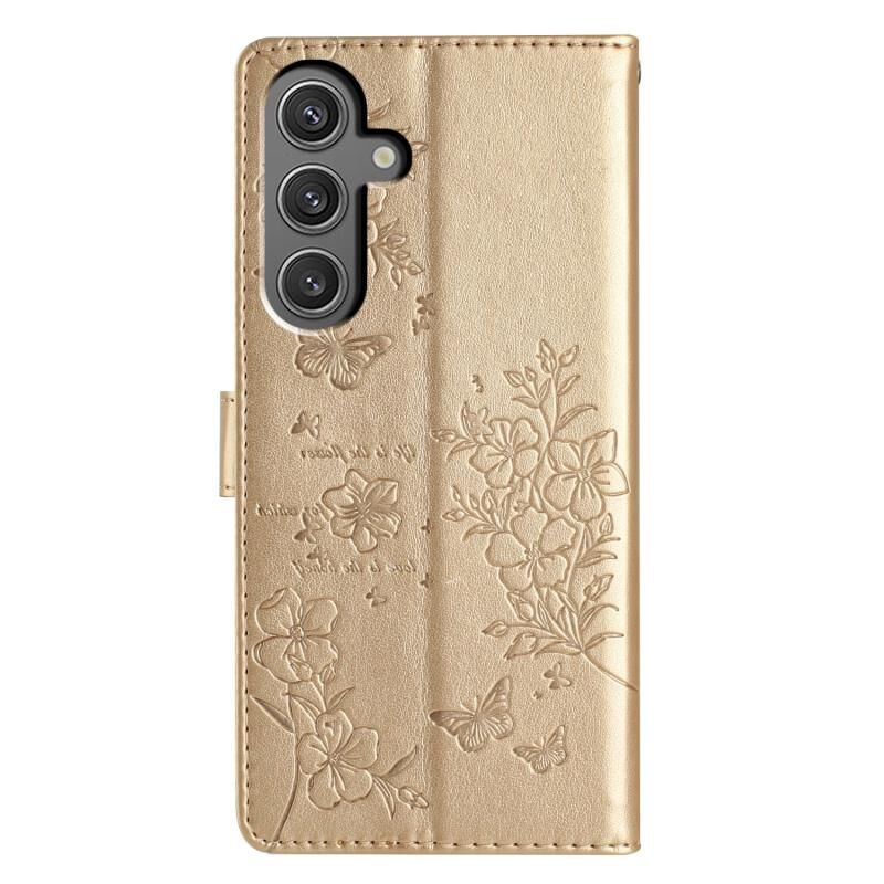 For Samsung Galaxy S23 FE 5G Butterflies and Flowers Leather Phone Case(Gold)