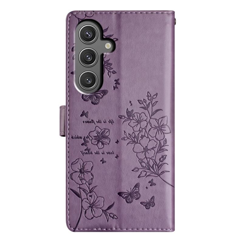 Θήκη τηλεφώνου Samsung Galaxy S23 FE 5G από δέρμα με πεταλούδες και λουλούδια (Χρυσό)