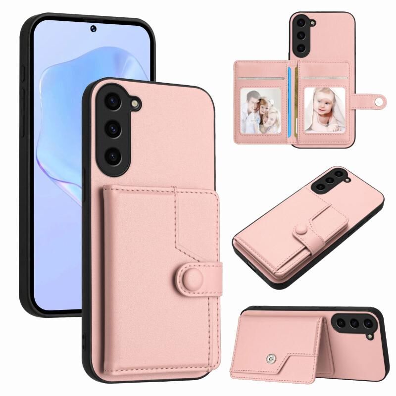 For Samsung Galaxy S23 FE 5G Button Card Bag RFID Anti-theft Phone Case(Pink)